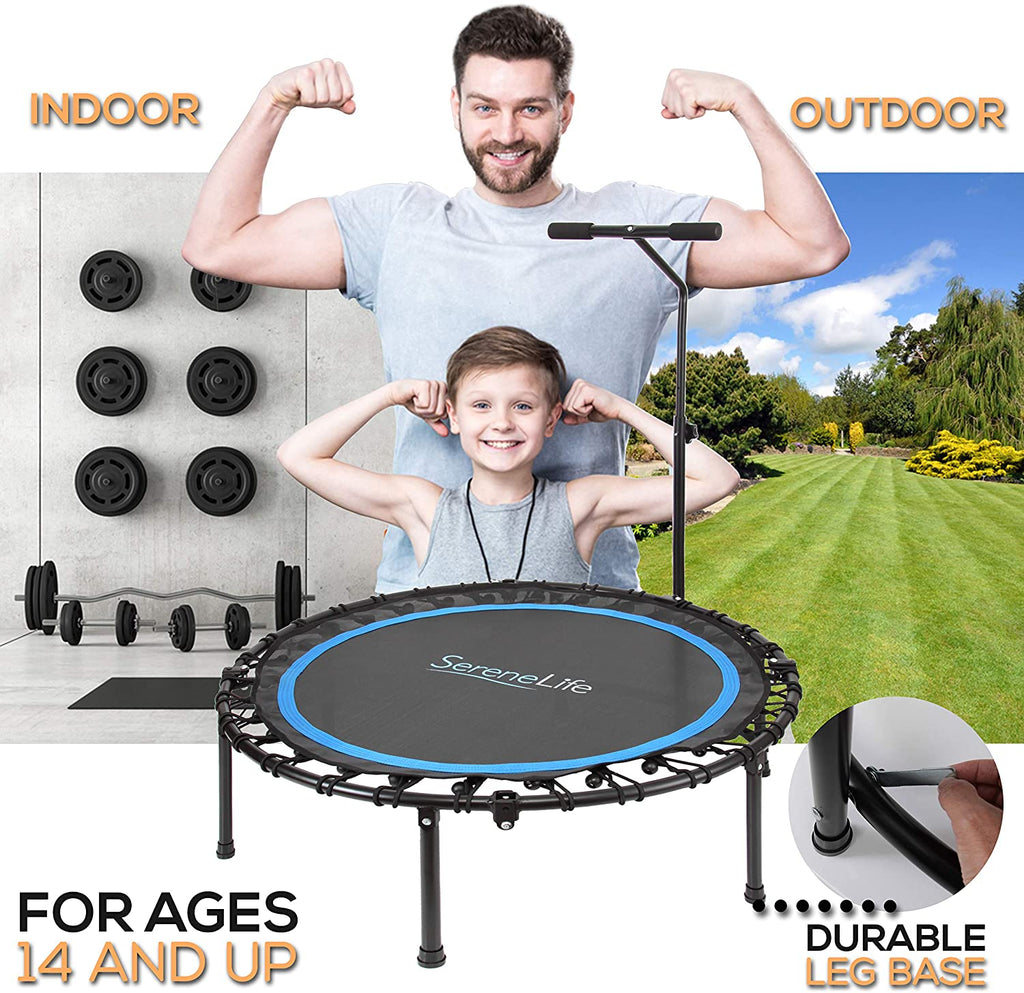 ADUSTABLE T-BAR HANDRAIL FOR STABILITY – featuring a T-Bar handle design which is fully adjustable, you will feel stable and secure while using your jumping fitness trampoline.